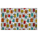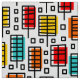 A colourful original retro-modern style design made up of rectangular leaf like motifs with offset colour rectangles.