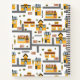 This custom city map themed school notebook makes a perfect gift for young boys and girls who love roads, towns, buildings, and vehicles. There is a pattern of a cafe restaurant, pizza parlour, and school in shades of yellow, red, and grey. There are also trees and fences. Add the name of your little kid for a personal touch.