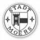The design showcases a striking red embattled tower, a representation of Moers as a fortified city. This is combined with the black fess (horizontal bar) on a gold background, which is the historical coat of arms of the influential Counts of Moers. Together, these elements tell the story of a city founded around a mediaeval castle that received its city rights in 1300 from King Albrecht I.