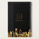 A black background, with a modern, abstract faux gold city skyline as decor. Personalise and add your business logo, monogram letters, name and a title. Golden letters. Your company logo both on front and on the back.
