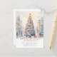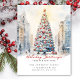 This festive Christmas holiday moving announcement features the saying "Holiday Greetings from Our New Home" with a beautiful watercolor snowy city street with a big Christmas tree. The announcement is perfect for sending to friends and family during the holiday season to let them know about your new address. The front of the announcement features the saying and the watercolor snowy city street scene, and includes your new address and contact information. The overall design is festive and charming, and the announcement is sure to put a smile on the faces of your loved ones.