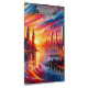 A vibrant sunset over a bustling cityscape, with warm orange and pink hues reflecting off glass skyscrapers.