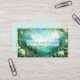 Define your brand with vibrant splendor and the magical elegance of a hidden alpine kingdom using this captivating business card. The design transports you to a magnificent, sun-drenched mountain valley, where towering, misty peaks descend to frame a serene lake. The entire scene is drenched in ethereal light, reflecting off the water and highlighting the small, fairytale city nestled along the shore. The foreground is lavishly framed by a natural archway of lush white and pale yellow roses and assorted wildflowers, creating a vibrant, romantic border. This artwork blends rich, magical realism with serene natural beauty, conveying a sense of adventure, prosperity, and high-end elegance that makes your card truly unforgettable. This business card is ideally suited for a luxury event planner specializing in grand, destination, or fantasy-themed celebrations, a boutique hotelier wanting to convey a magnificent, picturesque setting, or a fine art print seller showcasing lush natural scenes. It would also perfectly suit a fantasy novelist or editor seeking distinctive, narrative-driven branding, or a landscape architect whose focus is on artistic, abundant garden design.
