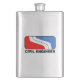 The product is a good size and came exactly as it was pictured. The lid is not attached to the flask, which could be dangerous on drunken nights... The print came out surprisingly well and looks very sharp. Would definitely recommend.