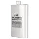 The product is a good size and came exactly as it was pictured. The lid is not attached to the flask, which could be dangerous on drunken nights... The print came out surprisingly well and looks very sharp. Would definitely recommend.