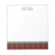 Personalised note pad with a border of the family tartan of Clan Ainslie, a traditional bright red and forest green Scottish plaid pattern.