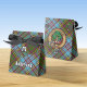 Clan Anderson crest badge surrounded by a strap and buckle over tartan background. Custom text and monogram.