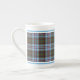 Bone china mug in the family tartan for Clan Anderson, an elaborate Scottish plaid pattern in light blue, green, and red, with black, white, and bright yellow accents.