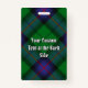 Clan Armstrong crest badge surrounded by a strap and buckle over tartan background. Custom text.