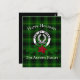 Stylish Holiday postcard features Scottish Clan Arthur (MacArthur / Artair ) crest badge and customisable text on tartan background with a festive poinsettia and fir bough swag.