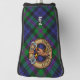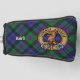 Clan Baird crest badge surrounded by a strap and buckle over tartan background. Custom text.