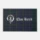 Stylish shield shaped patch features Clan Baird's crest badge and customisable text on tartan background