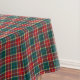 Tablecloth in a bright red and forest green Scottish tartan, with light blue, yellow and white accents. Traditional Clan Baxter family plaid pattern, from 1856. Choose from three sizes.