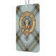 Clan Bell crest badge surrounded by a strap and buckle over tartan background. Custom text on both sides.
