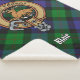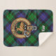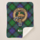 Clan Blair crest badge surrounded by a strap and buckle over tartan background. Custom text.