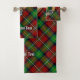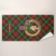Clan Boyd crest badge surrounded by a strap and buckle over tartan background. Custom text on each towel.