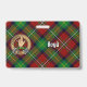Clan Boyd crest badge surrounded by a strap and buckle over tartan background. Custom text on both sides.