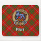 Clan Bruce crest badge surrounded by a strap and buckle over tartan background. Custom text.