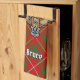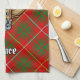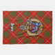 Clan Bruce crest badge surrounded by a strap and buckle over tartan background. Custom text.
