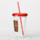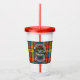Stylish acrylic tumbler features Scottish Clan Buchanan crest badge and text on tartan background.
