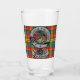 Scottish Clan Buchanan crest badge and text on tartan background.