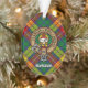 Buchanan crest badge surrounded by a strap and buckle over clan tartan background. Custom text on both sides.