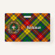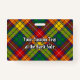 Clan Buchanan crest badge surrounded by a strap and buckle over tartan background. Custom text on both sides.