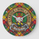 Clan Buchanan crest badge surrounded by a strap and buckle over tartan background. Custom text.