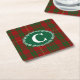 Colourful pulp board paper coasters, with graphics of the traditional Scottish red, green, and yellow clan Cameron tartan plaid pattern. A green decorative plaque has a white single letter monogram ready to personalise. Great for parties, every day, and gift giving.