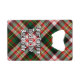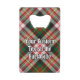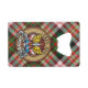 Clan Carnegie crest badge surrounded by a strap and buckle over dress tartan background. Custom text on both sides.
