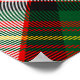 Clan Carnegie crest badge surrounded by a strap and buckle over dress tartan background. Custom text.