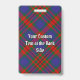 Clan Carnegie crest badge surrounded by a strap and buckle over tartan background. Custom text.