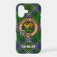 Clan Cockburn crest badge surrounded by a strap and buckle over tartan background. Custom text.