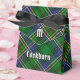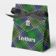 Clan Cockburn crest badge surrounded by a strap and buckle over tartan. Custom monogram. Custom text.