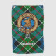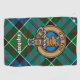 Clan Colquhoun crest badge surrounded by a strap and buckle over tartan background. Custom text.