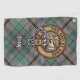 Clan Craig crest badge surrounded by a strap and buckle over tartan background. Custom text.