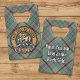 Clan Craig crest badge surrounded by a strap and buckle over tartan background. Custom text on both sides.