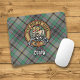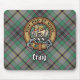 Clan Craig crest badge surrounded by a strap and buckle over tartan background. Custom text.