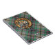 Clan Craig crest badge surrounded by a strap and buckle over tartan background. Custom text.