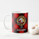 Clan Cunningham crest badge surrounded by a strap and buckle over tartan background. Custom text on both sides.