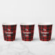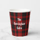Plaid paper cup with the traditional Scottish black and red clan Cunningham tartan plaid pattern. Personalize the custom white text to suit your needs. Matching napkins and paper plates are available.