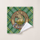 Clan Currie lion crest badge surrounded by a strap and buckle over tartan background. Custom text on each towel.