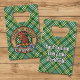 Clan Currie rooster crest badge surrounded by a strap and buckle over tartan background. Custom text on both sides.