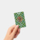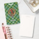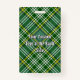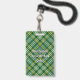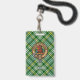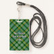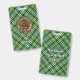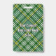 Clan Currie rooster crest badge surrounded by a strap and buckle over tartan background. Custom text.