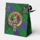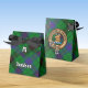 Clan Davidson crest badge surrounded by a strap and buckle over tartan. Custom monogram. Custom text.