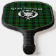 Stylish pickleball paddle features Scottish Clan Douglas crest badge and customisable text on tartan background