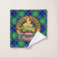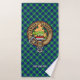 Clan Douglas crest badge surrounded by a strap and buckle over tartan background. Custom text on each towel.