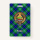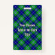 Clan Douglas crest badge surrounded by a strap and buckle over tartan background. Custom text.