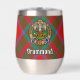 Clan Drummond crest badge surrounded by a strap and buckle over tartan background. Custom text on both sides.