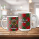 Clan Drummond crest badge surrounded by a strap and buckle over tartan background. Custom text on both sides.
